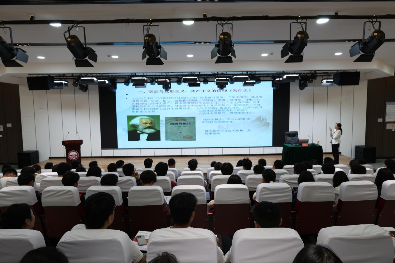 为深化青年学生思想引领,厚植家国情怀,点燃爱国奉献的青春热情,进一步加深发展对象对中国共产党信仰的内涵与力量,增强学员们的凝聚力和向心力,9月29日下午,我校第一期发展对象第三讲《共产主义信仰的力量》专题党课在毕昇楼报告厅举行,本次党课由马克思主义学院吉瑞君教授主讲。