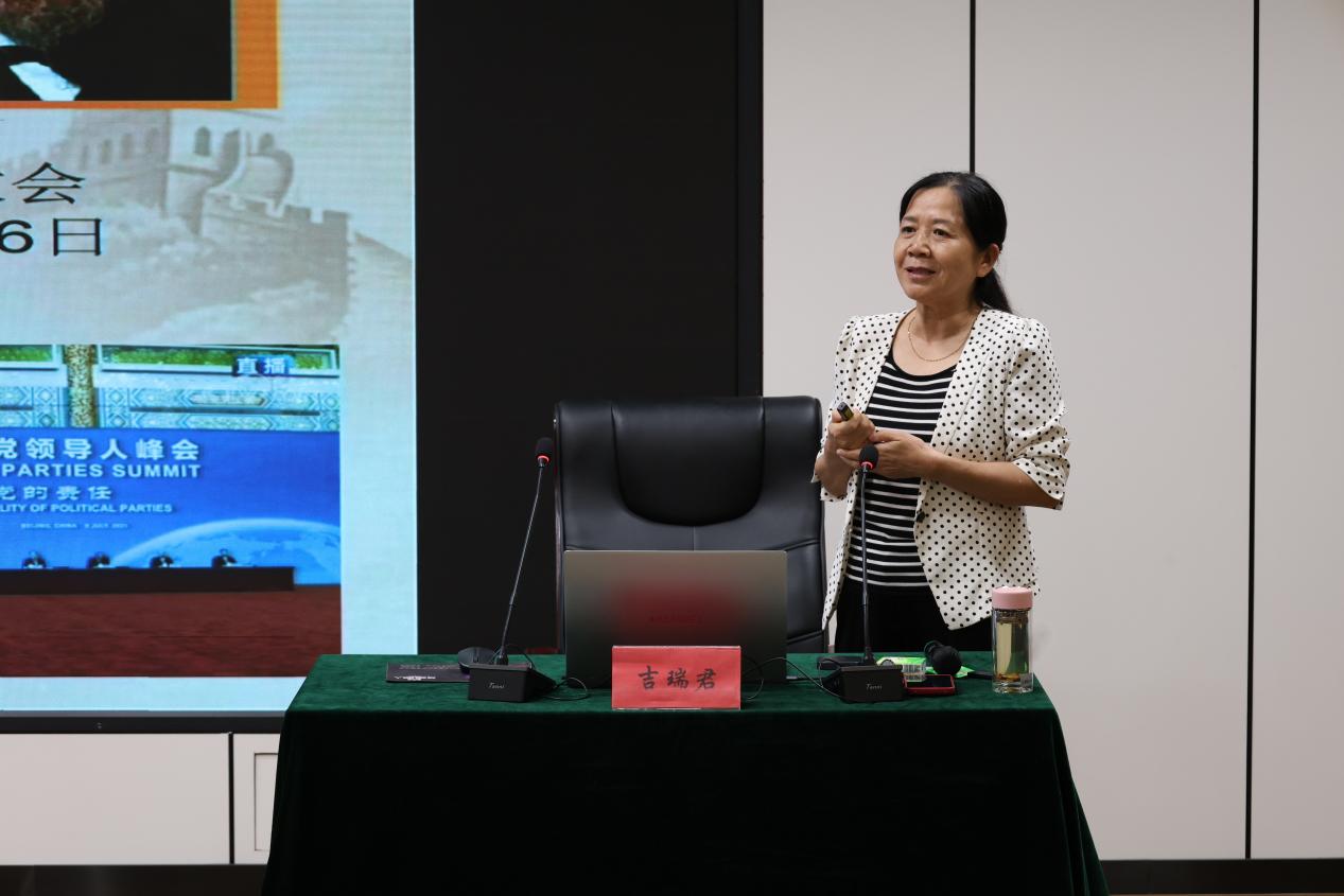 吉瑞君以《共产主义信仰的力量》为主题,从四个维度展开讲解。在“为何坚定马克思主义、共产主义信仰”部分,她结合人类社会发展规律,梳理世界社会主义500年历程,借陈望道故事阐明马克思主义政党的必然性。“坚持中国共产党领导经历的艰难困苦”部分,通过中共一大代表奋斗史及革命先烈事迹,展现共产党人以信仰换新中国成立的历程。“集聚信仰的力量砥砺前行”环节,讲述不同时期英雄事迹,凸显信仰支撑作用。最后,她提出,发展对象要始终如一的坚定信仰、知行合一、积极践行我党全心全意为人民服务的宗旨。