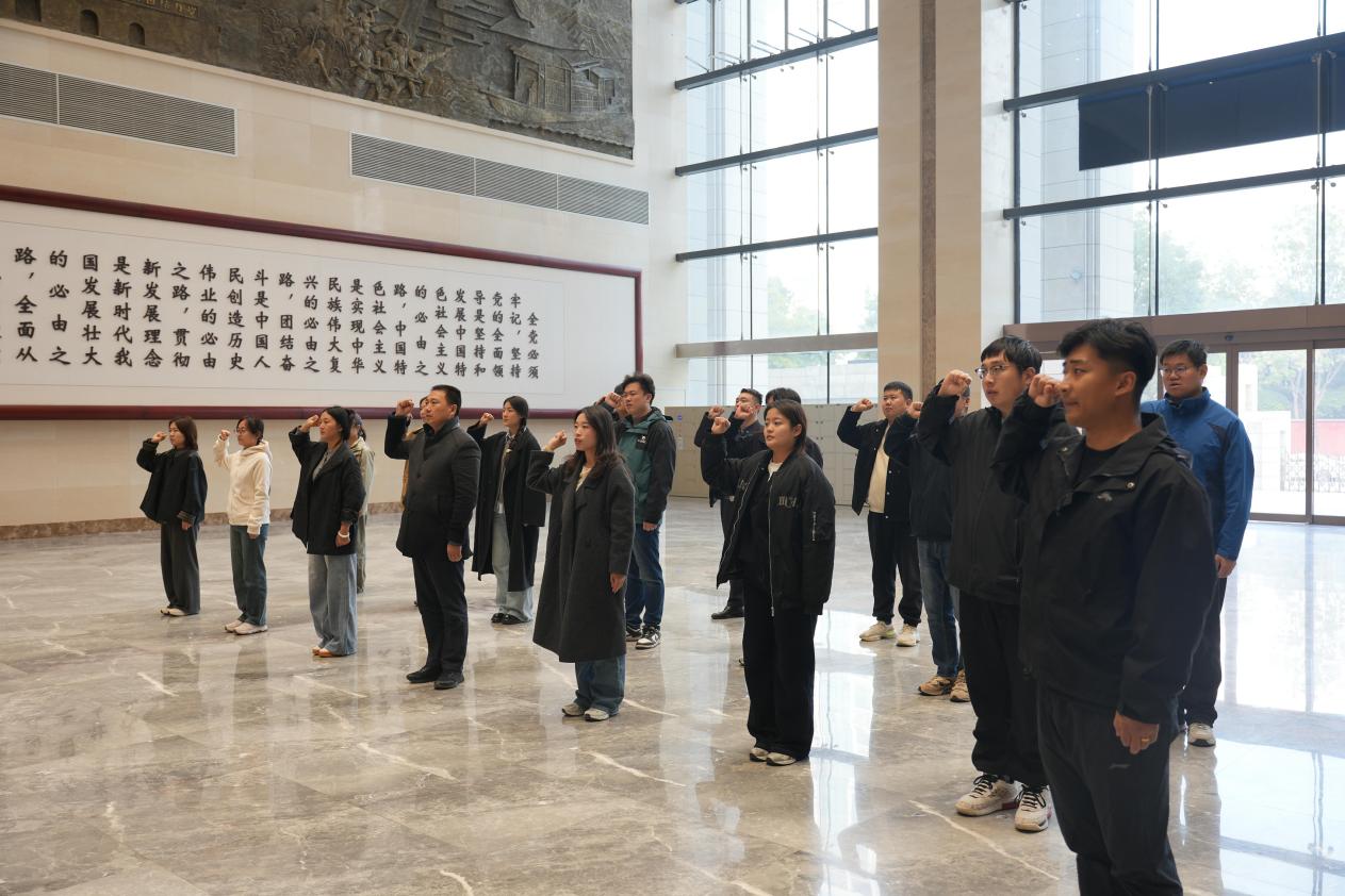 师生代表步入河南廉政文化教育馆,在展馆前整齐列队,庄严宣誓,重温入党初心,表达了身为新时代共产党员坚定不移听党话、跟党走的信念和决心。