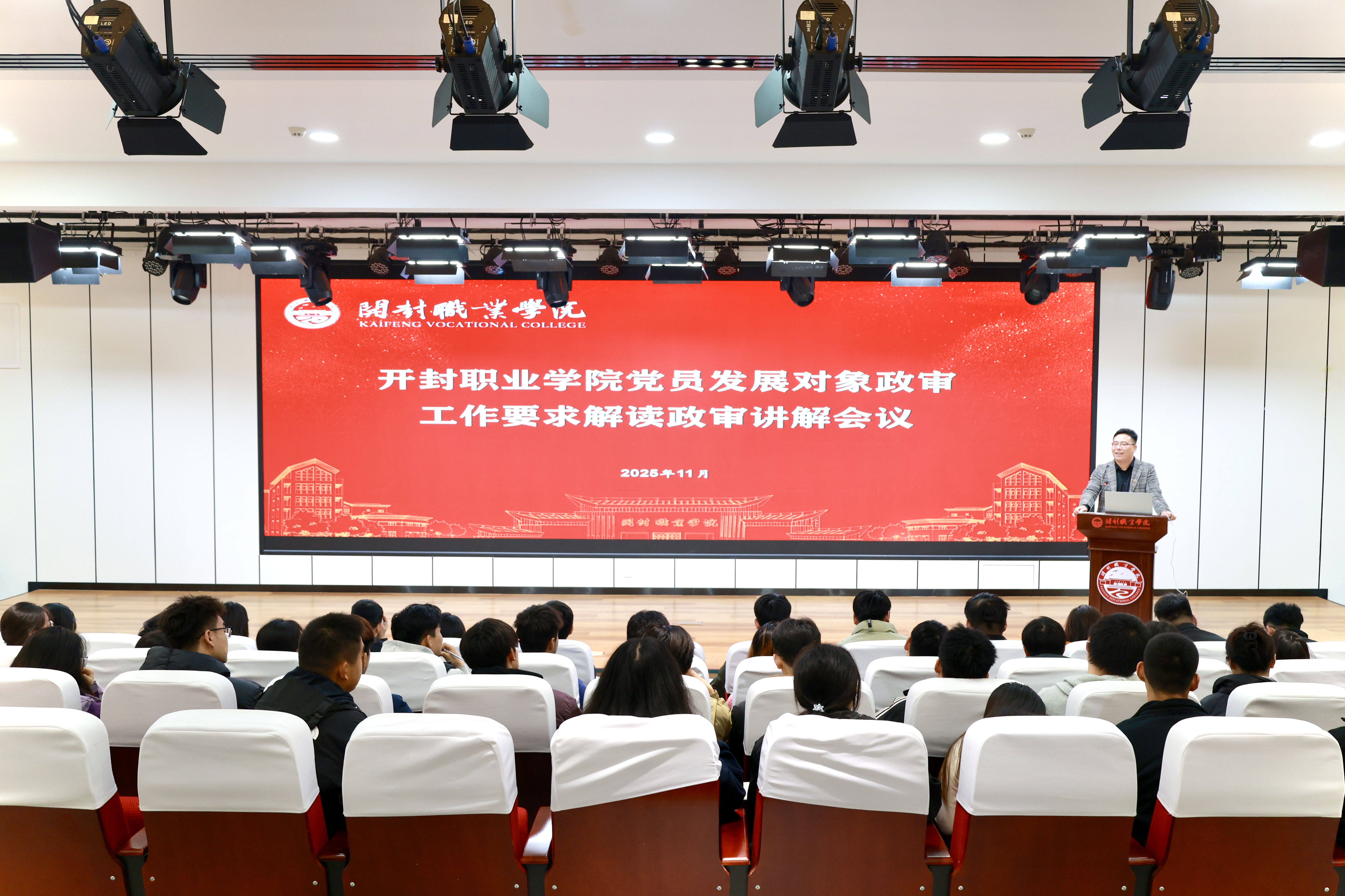 为规范党员发展工作,确保政审材料质量,开封职业学院于11月7日下午在毕昇楼报告厅组织召开发展对象政审材料填写培训会。此次会议由校党委委员、组织(统战)部长高云龙主持。