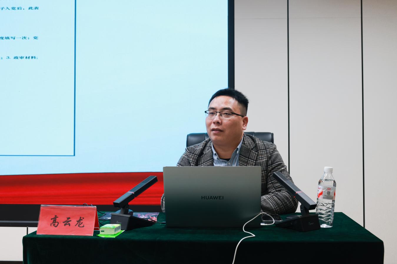 开班仪式结束后,校党委委员、组织(统战)部长高云龙以《严把程序关口、压实责任链条——党员发展标准化建设指南》为题,为全体学员讲授了培训班的第一课。
