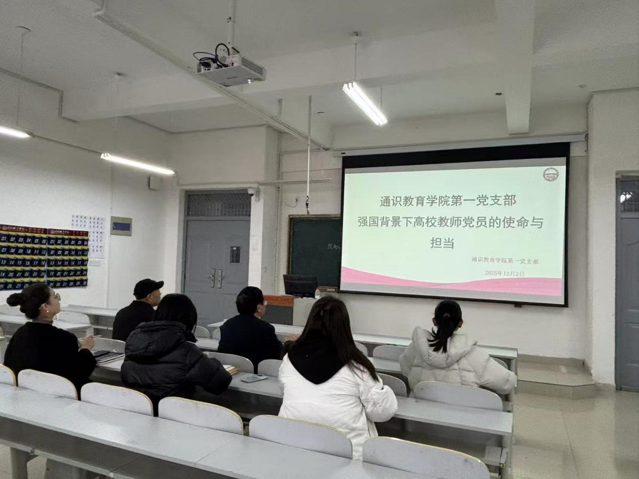 12月2日上午,通识教育学院第一党支部在希文楼203教室组织开展政治理论学习活动。本次学习以“强国背景下高校教师党员的使命与担当”为主题,由党支部书记花清亮主持,支部全体党员教师参加。