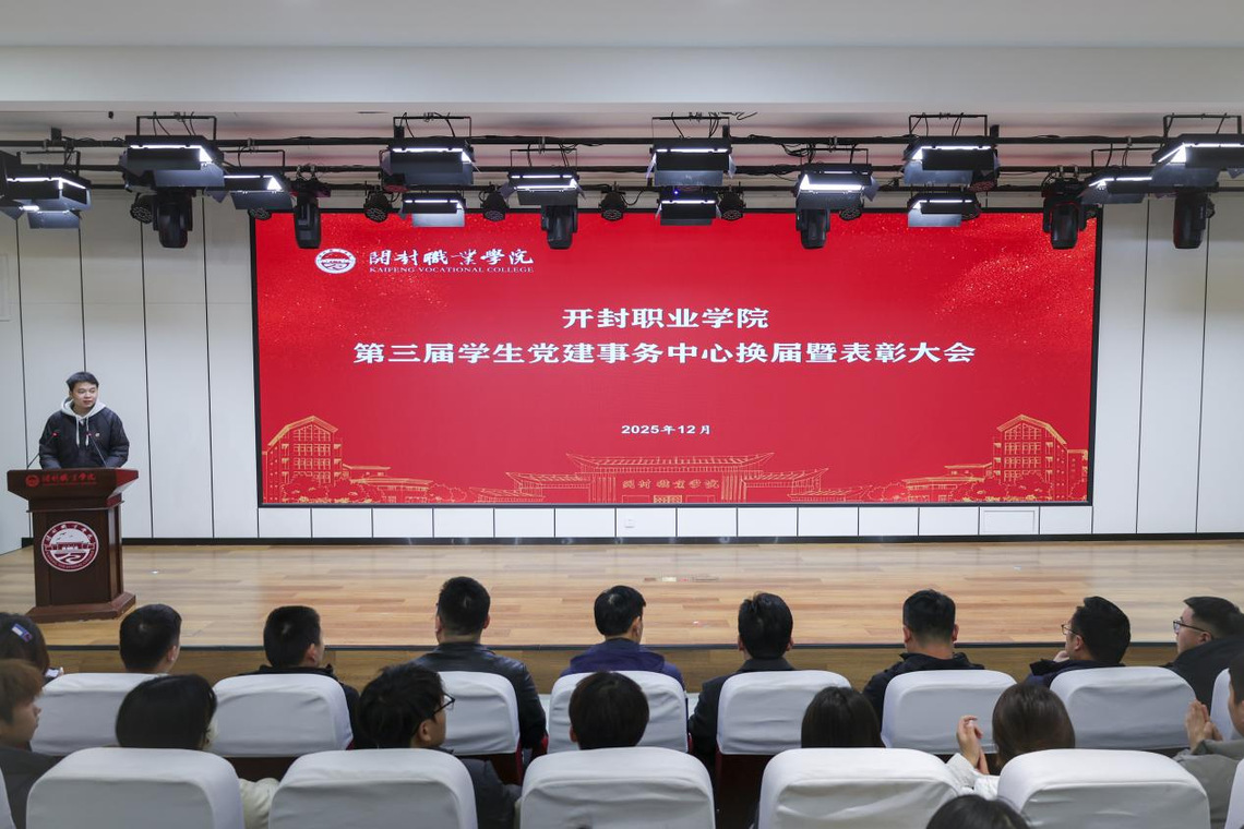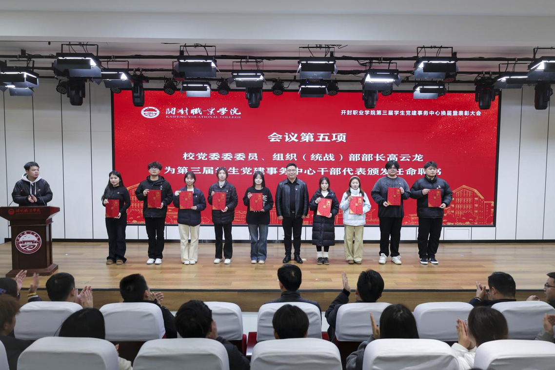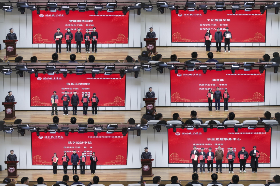 大会伊始,学生党建事务中心指导老师张梦洁宣读《关于表彰第二届学生党建事务中心优秀学生干部及先进个人的决定》。与会领导为获奖代表颁发荣誉证书及奖品,并对他们在任期内以实际行动彰显学生骨干先锋模范作用的突出表现予以肯定。随后,第二届学生党建事务中心学生代表张彦炎上台发言。他深情回顾了在党建事务中心的成长历程,分享了“以初心践行使命,以实干诠释担当”的工作感悟,并勉励新一届成员“永葆赤诚之心,勇担时代重任”。