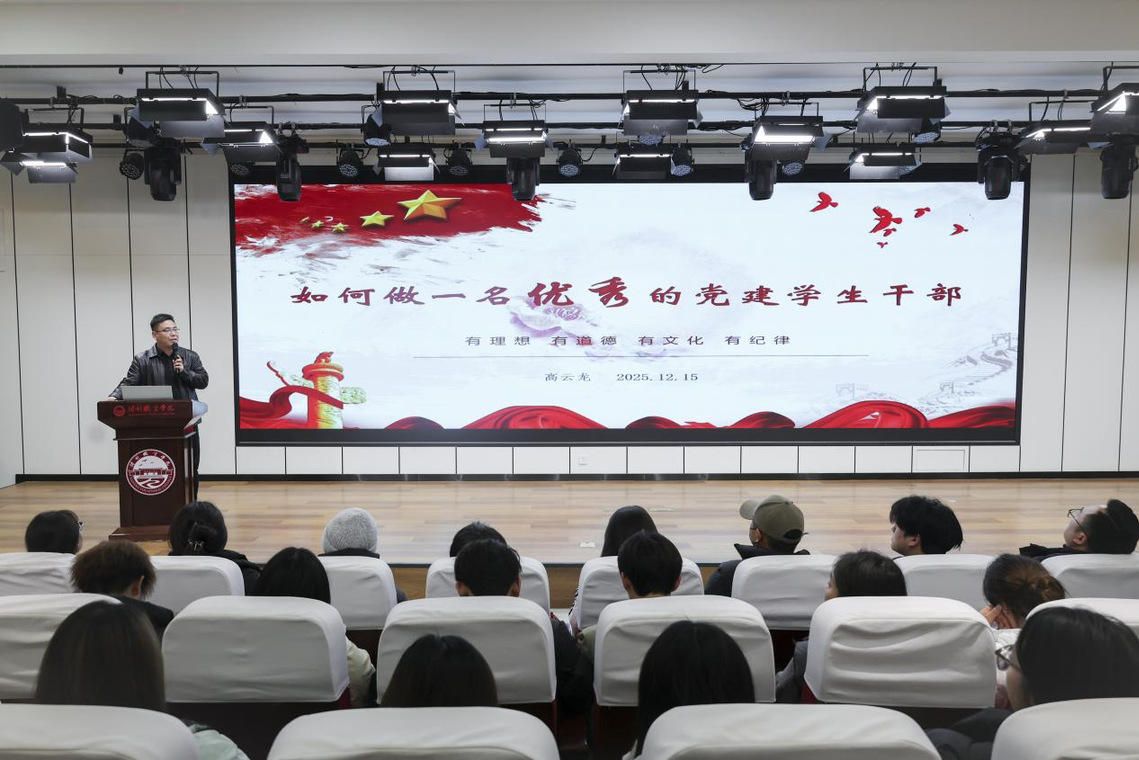 最后,校党委委员、组织(统战)部部长高云龙从明确一个定位、落实两项任务、发挥三个作用、理顺四种关系、巧用五种方法、培养六种意识六个方面,系统诠释了如何做一名优秀的党务学生干部。他强调,人生不是立定跳远,而是三级跳,即便第一跳没有达到预期,依然有第二跳、第三跳的机会去追赶和超越。他勉励全体党建学生干部要以勤奋为桨、以努力为帆,在服务同学、锤炼自我的道路上不断前行,为学校党建工作贡献青春力量。