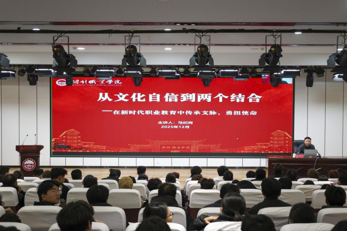 为深入学习贯彻党的二十届四中全会精神,引导全校师生从文化自信中汲取奋进力量,深刻领会“两个结合”的重大意义,12月17日下午,校党委副书记、副校长马纪岗以《从文化自信到“两个结合”——在新时代职业教育中传承文脉、勇担使命》为题,为全校300余名师生作专题宣讲。