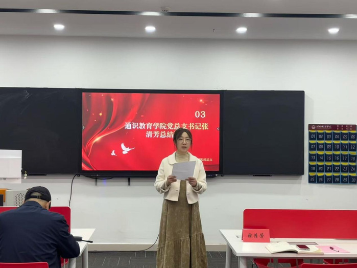为深入学习贯彻习近平总书记关于树立和践行正确政绩观的重要论述,引导党员教师坚定育人初心、强化责任担当,4月21日下午,通识教育学院在毕昇楼217教室召开“政绩为谁而树”专题学习研讨会。会议由学院组织委员曹淼老师主持,党总支书记张清芳老师出席,全体党员教师参加。